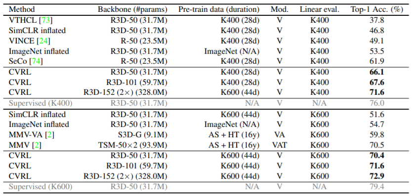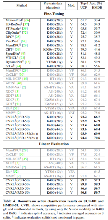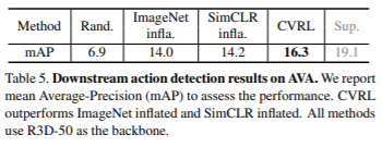 마지막으로 해당 방식으로 학습한 feature의 downstream성능을 확인하기 위해 action detection(AVA)과 action classification (UCF-101)을 진행하였다.