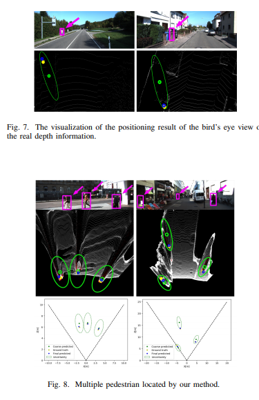 (1) Coares Location. PifPaf[2]를 통해 예측된 보행자의 포즈 정보를 입력값으로 사용하여 monoloco로부터 보행자의 coarse한 위치를 예측하고 또다른 예측값인 uncertainty bias를 Region of localization으로 사용합니다. Uncertainty bias를 Region of localization은 Fig 2의 초록색의 타원에 해당합니다.