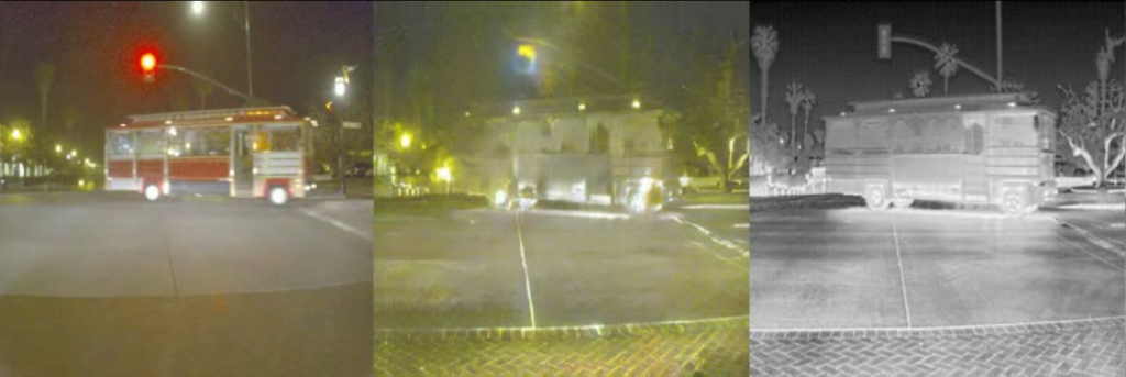 확실히 멀티스펙트럴 인풋으로 들어가기 때문에 Fake ‘RGB’를 잘 만들고 있다고 생각이 들었지만… 결국 카이스트셋의 입력은 얼라인이 맞기 때문에 FLIR로 다시 실험을 하면 다음과 같은 결과가 나타났습니다.