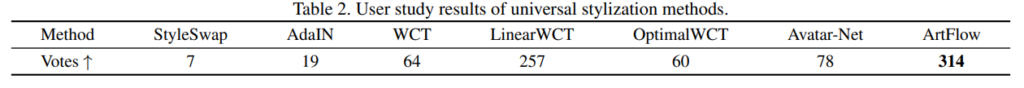 그리고 User 평가도 진행하였는데 ArtFlow가 가장 많은 표를 받았다고 합니다. 다만 이는 주관적이라 애매한것 같습니다.