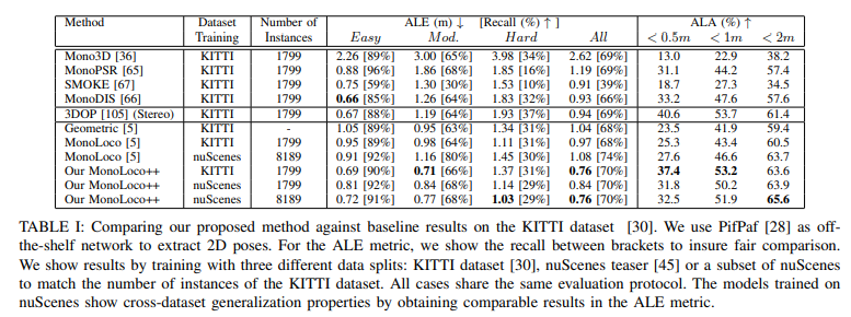 – monoloco : Laplace loss + L1 loss(d)