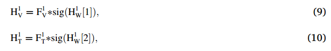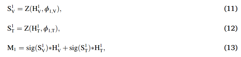그렇게 구한 H값은 sigmoid를 한 후 앞의 피쳐와 곱해줍니다. 즉, attention을 주기위한 weight값으로 사용됩니다. H와 F 의 차원이 맞지 않느냐고 하실 수 있지만, 위의 수식에서 [1]과 [2]는 채널정보에서 vis에 대한 정보, thermal에 대한 정보를 의미합니다. 즉, 피쳐가 128 차원이라고 한다면, H는 256차원이 될것이고, H[1], H[2]는 각각 128차원씩 될 것 입니다.
