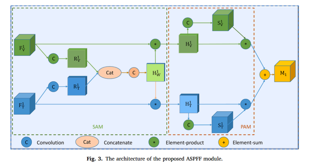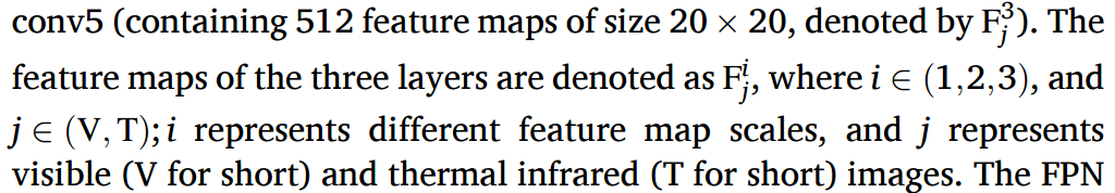 위에서 언급한것처럼 F는 Thermal이나 Visible에서 i번째 레이어의 피쳐맵입니다. 해당 아키텍쳐에서는 총 3개의 다른 스케일로부터 피쳐를 뽑아내므로 i는 {1, 2, 3}이 됩니다.