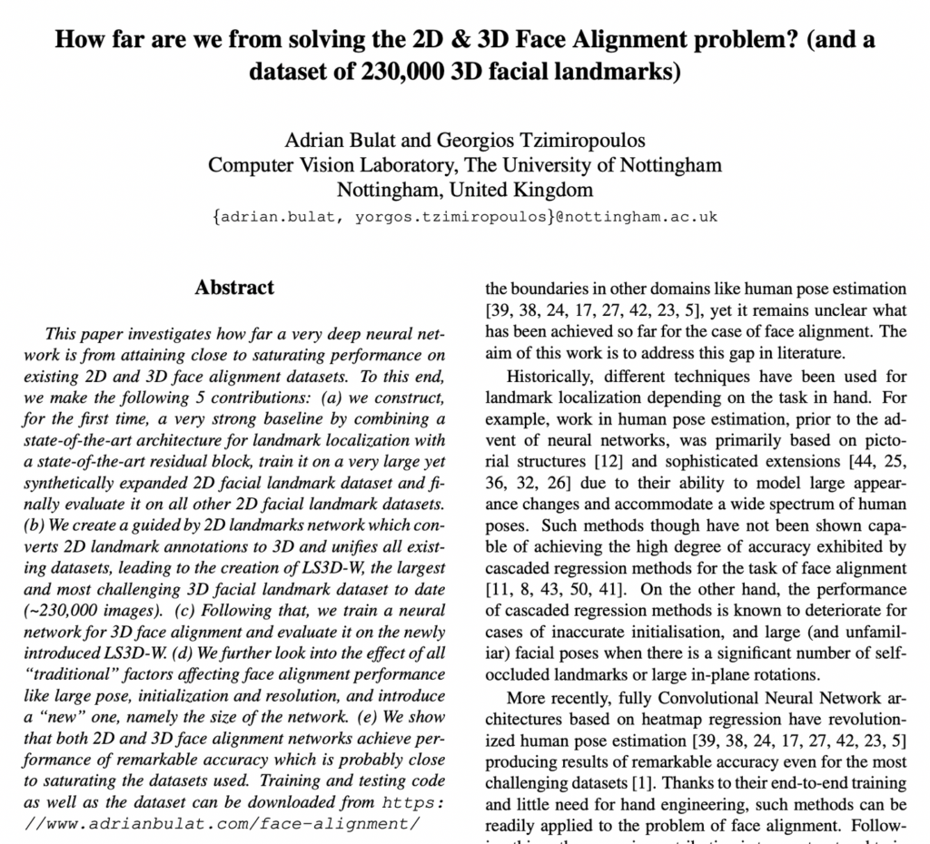 How far are we from solving the 2D & 3D Face Alignment problem? (and a dataset of 230,000 3D facial landmarks) – [ 바로가기 ]