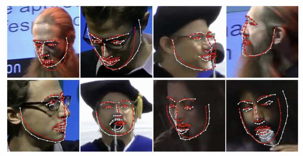 해당 그림의 빨간색 랜드마크가 GT, 그리고 하얀색 랜드마크가 FAN의 예측 결과입니다.