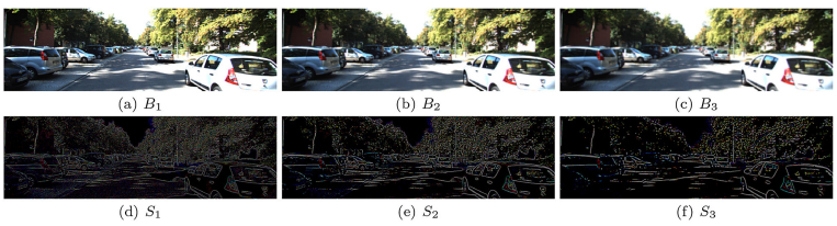 위 그림 에서 B는 아래 식 1 과 같이 첫 RGB 영상에 bilateral filter를 씌워서 저주파로 만든 것이고 S는 저주파를 통해서 얻는 고주파 성분이다.
