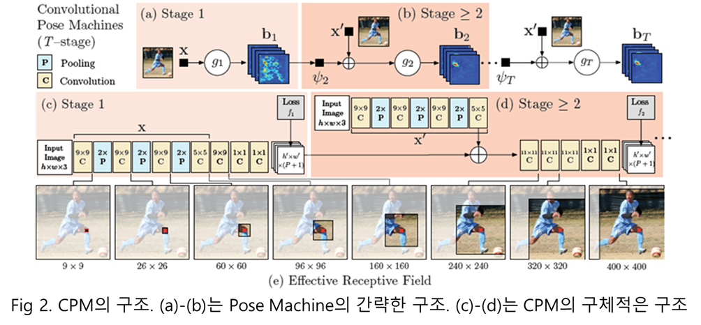보이는 바와 같이 각 스테이지들은 이전 스테이지의 출력값과 입력 영상 특징 값을 기반으로 연산이 이뤄짐으로써, 점진적으로 receptive field를 늘려가는 특징이 있습니다.