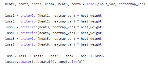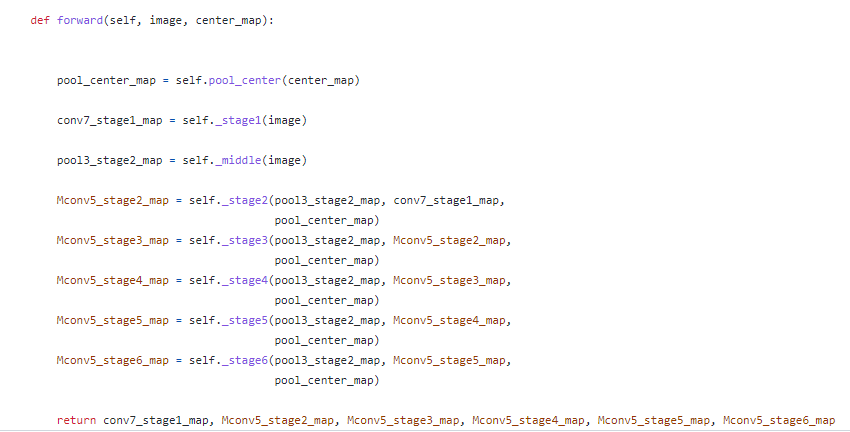 상단의 코드에서 보시다싶이 각 스테이지에서의 출력값(heat map)을 모델의 forward을 리턴값으로 뱉습니다.