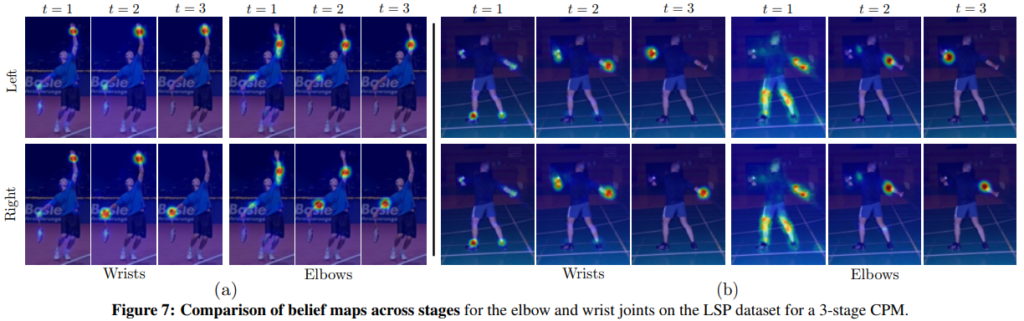 해당 방법론의 가장 큰 의미는 처음으로 confidence map(belief maps)을 이용하여 키포인트를 추론 및 학습했다는 부분에 있습니다. score map을 이용한 방법은 이후 Bottom-up 방식의 pose estimation 방법론에 큰 영향을 끼쳤습니다.