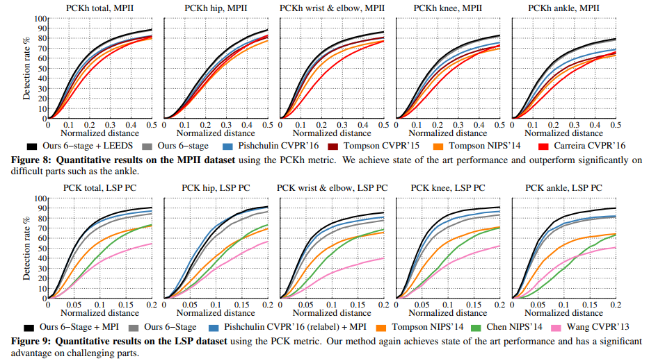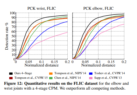 평가는 LSP, MPII, FLIC에서 진행되었습니다. 각 데이터 셋에 대한 설명과 평가 방법에 대해서는 이전 리뷰를 참고해주시기 바랍니다.
