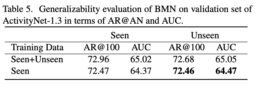 또 하나 흥미로운 것은 Temporal action proposal Task는 보지 못했던 Action에 대해서도 대략적인 Proposal을 할 줄 아는 것이 좋은 상황인데 , BMN이 그렇다는 것 입니다.