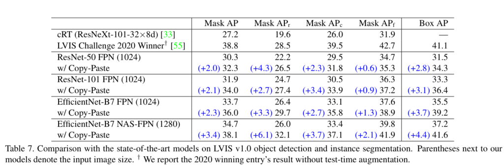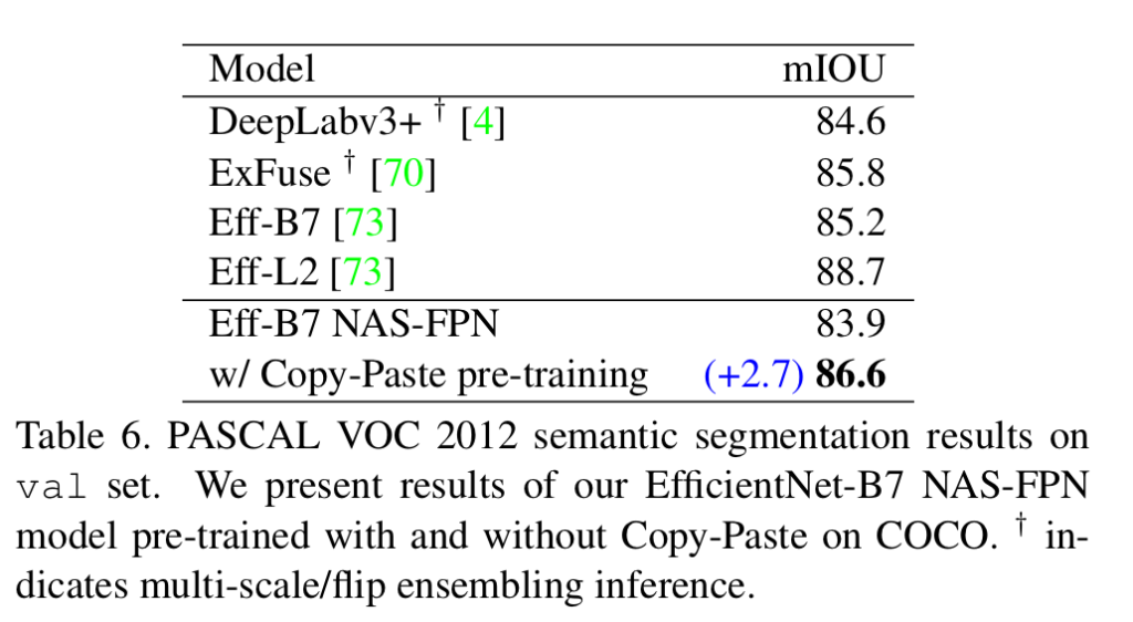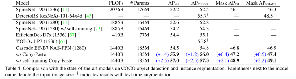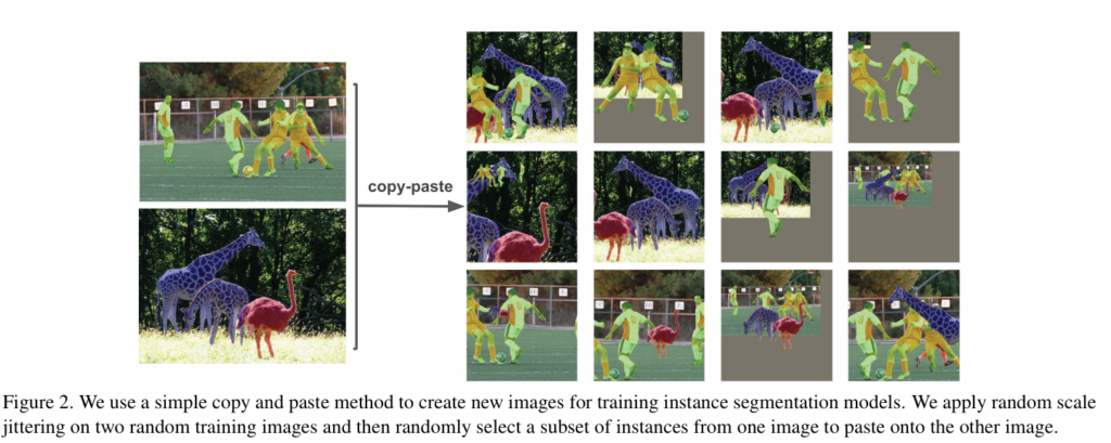 또한 저 CopyPaste는 이미 제안된 방법이며, instance segmentation에 적용한 방법들도 존재합니다. 출판된 곳 또한 ICCV, ECCV, CVPR 등 매우 훌륭한 출판지에 붙었습니다. 처음 제안한 방법도 아닌데 왜 해당 논문이 붙은 걸까요?