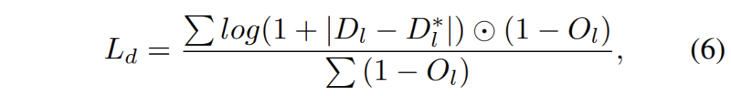 하지만 StereoNet의 한가지 문제가 존재하는데 이는 바로 좌,우 영상에 occlusion이 발생한 지역에서는 부정확한 Depth map이 생성된다는 것이죠. 그래서 저자는 단순히 StereoNet에서 추정된 Disparity를 target으로 SingleNet을 학습시키는 것이 아닌, StereoNet에서 학습하는데 사용한 Occlusion map을 똑같이 적용하여 Occlusion mask가 처리된 Disparity map을 SingleNet의 GT로 사용한다는 것입니다.