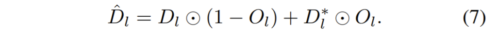 D^{*}_{l}는 SingleNet에서 추정한 왼쪽 영상의 Disparity map이며 저 별이 안붙은 것은 StereoNet의 Disparity map이겠죠. 그리고 뒤에 element-wise product를 통해 Occlusion mask가 적용된 모습입니다.