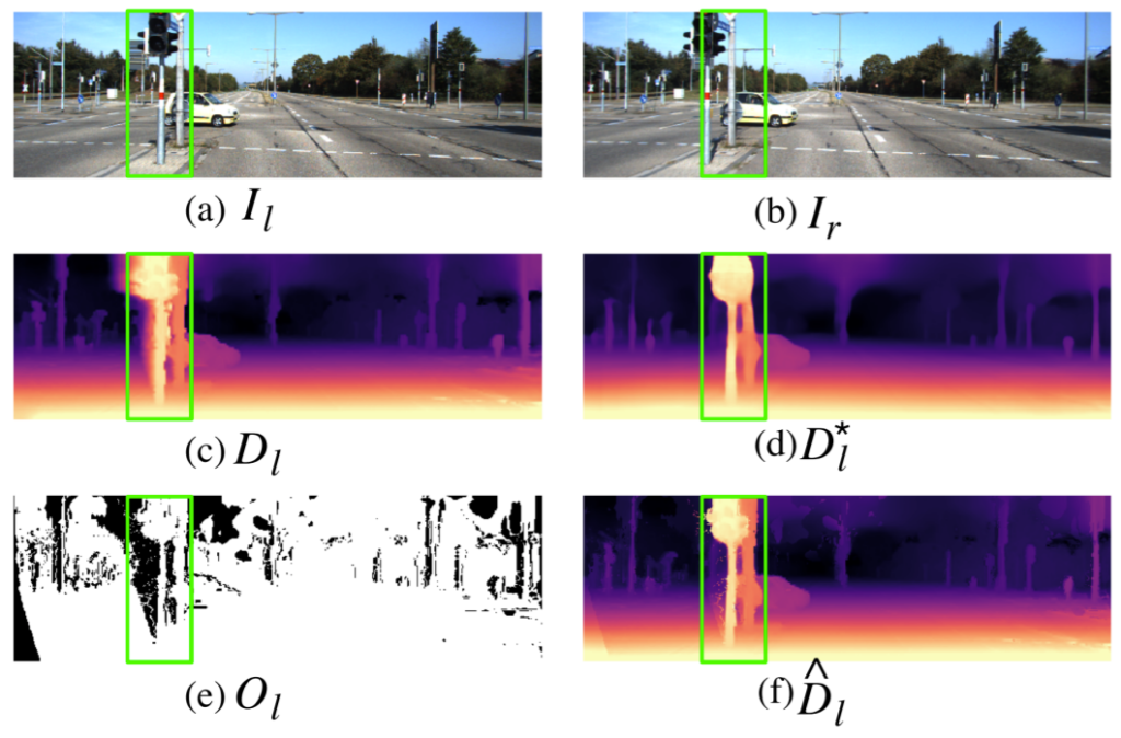저자는 기존의 방식들과 달리 occlusion-aware Distilation을 통해 스테레오 매칭 브랜치의 예측값을 보다 정확히 만들고 뿐만 아니라 Occlusion map을 생성함으로써 Supervised 형식으로 monocular depth를 학습시킨다고 합니다.