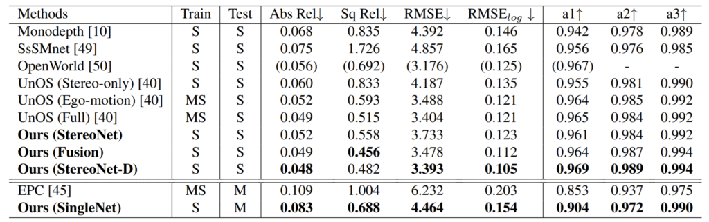 아 참고로 이 논문에서의 Stereo 방법론은 학습 때 Stereo 영상으로 loss를 계산하는 그런 방법론이 아니라 입력 자체가 좌우 영상 함께 들어가는 그런 방법론인 것 같습니다.