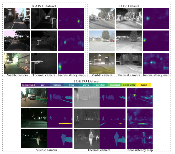 자신의 방법이 멀티스펙트럴 분야에서 효과적임을 보이기 위해서 KAIST, FLIR, TOKYO 데이터셋에 대해서 검증하고, Detection 뿐만 아니라 Segmentation에 대해서도 실험적으로 나타내고 있습니다.