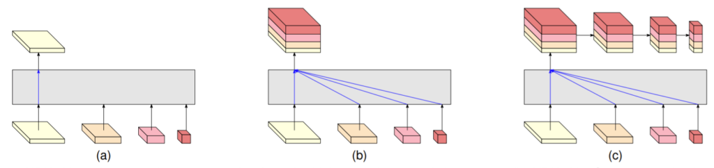 V2의 경우에는 모든 level의 feature map을 최종적으로 concatenation을 수행하여 예측하게 됩니다. multi scale feature map에서 표현되는 정보들이 중요한 Semantic Segmentation, Object Detection 등이 이러한 multi level feature map을 활용합니다.