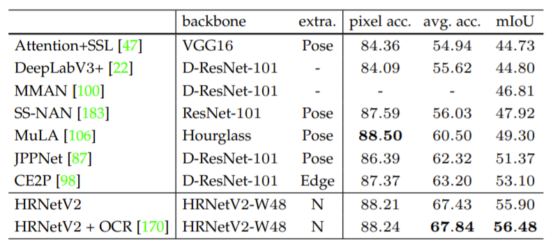 다음은 Segmentation 결과입니다. 데이터 셋으로는 CityScape, Pscal-Context, LIP dataset을 사용하였습니다. CityScape는 너무 유명하니 따로 설명은 필요 없을 듯 합니다. Pascal-Context는 학습과 평가용 데이터가 각각 약 5천장 정도를 가지고 있으며 label 종류는 59개 bg가 1개라고 합니다.