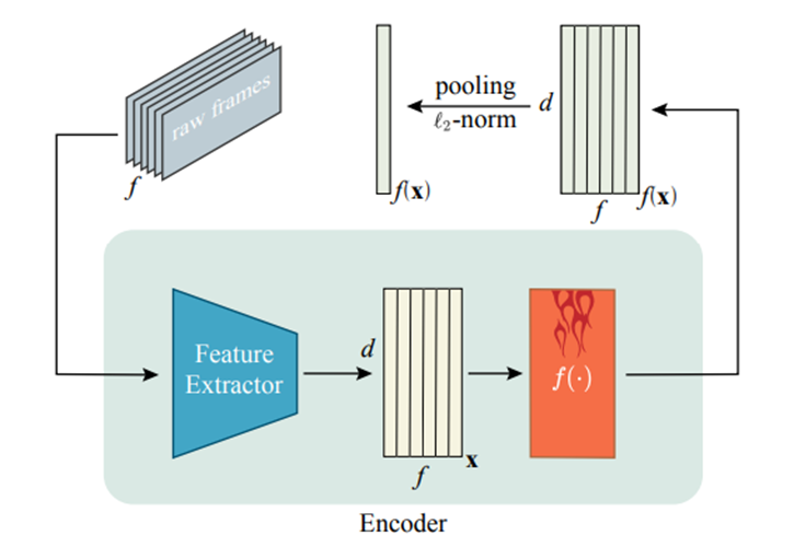 이 인코더가 바로 이 논문에서 말하는 self-attention mechanism입니다. 해당 방법론을 적용하면, encoding된 feature가 동일한 shape를 유지하면서 각각의 frame-level descriptor에서 긴 범위의 contextual information가 합쳐질 수 있다고 합니다. 이렇게 transformer를 태운 값이 frame level descriptor이고, video level descriptor는 frame level descriptor를 시간 축에 따라 평균을 취해주면 compact하게 나온다고 합니다.
