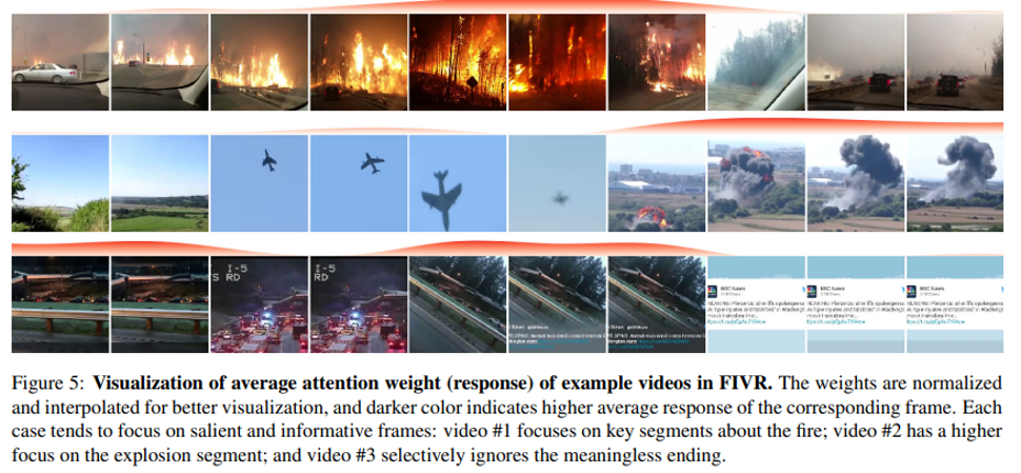 마지막으로 이 그림은 TCA에서 self attention mechanism이 어떻게 동작하는지 정성적인 결과를 나타내는 그림입니다. 실제로 비디오에서 중심 사건(화재, 폭발, 사고)등에 집중하는 모습을 확인할 수 있었습니다.