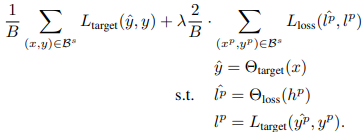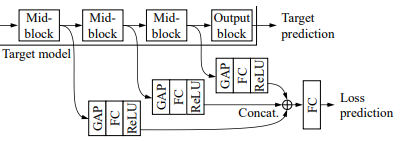 이와 같이 mini-batch 단위로 설계된 Loss prediction module을 포함한 전체 loss는 식 (3)과 같이 설계 됩니다. 여기서 y는 target task의 label, \hat{y}는 target 모델의 예측 값, h는 target 모델의 intermediate feature를 의미합니다.