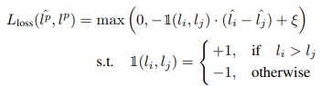 Loss prediction module loss는 먼저 mini-batch B개 내에서 B/2개의 쌍을 생성합니다. 생성된 쌍은 식 (1)과 같이 위첨자 p로 표시됩니다. 그리고 예측된 loss l' 와 target 모델 loss l에 대해 만들어진 쌍을 입력으로 두고 식(2)와 같은 loss 구조로 설계됩니다. 이러한 구조를 통해 쌍으로 묶인 두 target 모델 loss 간의 scale 차이가 일정 margin 이하일 때만 Loss prediction module을 학습하게 되었습니다.