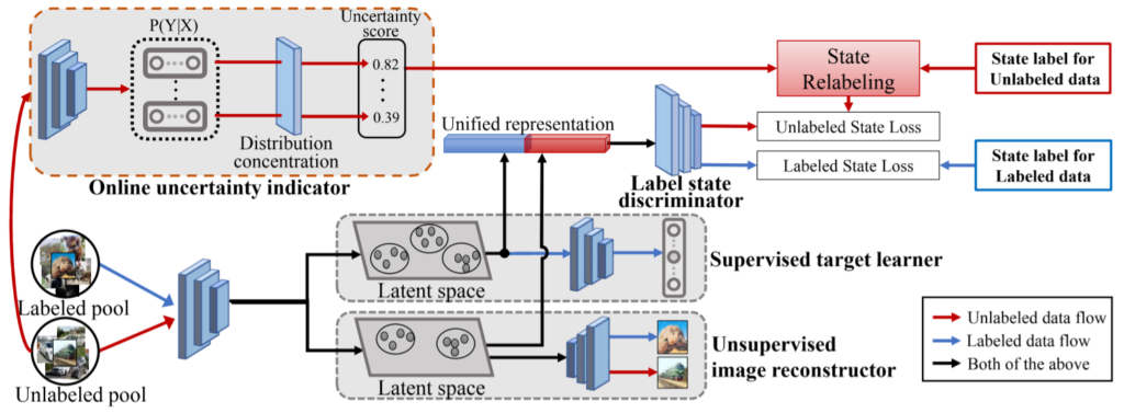 해당 논문은 데이터의 레이블이 없는 Unlabeled 데이터의 가치를 효과적으로 판단하는 모델을 학습하기 위해 Labeled data의 Annotation 정보와 Labeled data+Unlabeled data의 State 정보(=Labeled/Unlabeled)를 모두 사용하는 논문이다. 기존의 논문은 주로 Annotation 정보나 State 정보만 사용했다는 점에서 위의 특징은 논문의 contribution이 된다.
