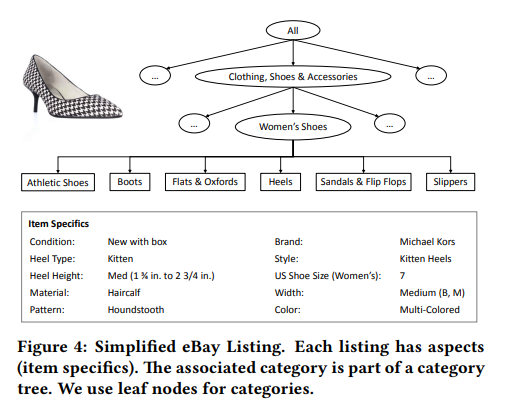 ebay 정도의 큰 데이터셋에서 작동하기에는 기존의 해결책들이 적합하지 않았고, 세분화된 카테고리를 적절한 시간과 정확도 안에 분류하는 문제가 있다고 합니다.