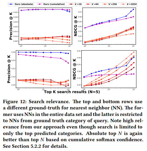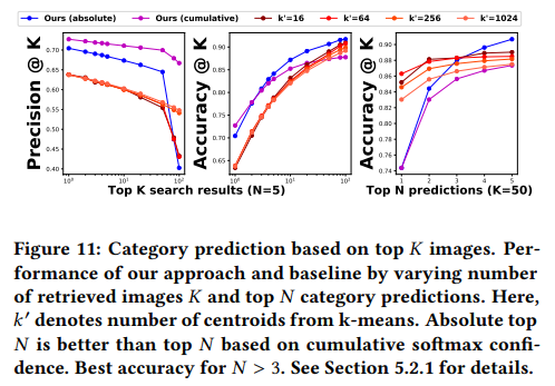 3가지 부분에서 비교를 수행합니다. Category prediction / Similarity search / Timing으로 앞에서부터 분류를 잘 했는지, 그 다음은 비슷한걸 잘 찾았는지, 마지막으로는 검색 속도에 대한 비교입니다.