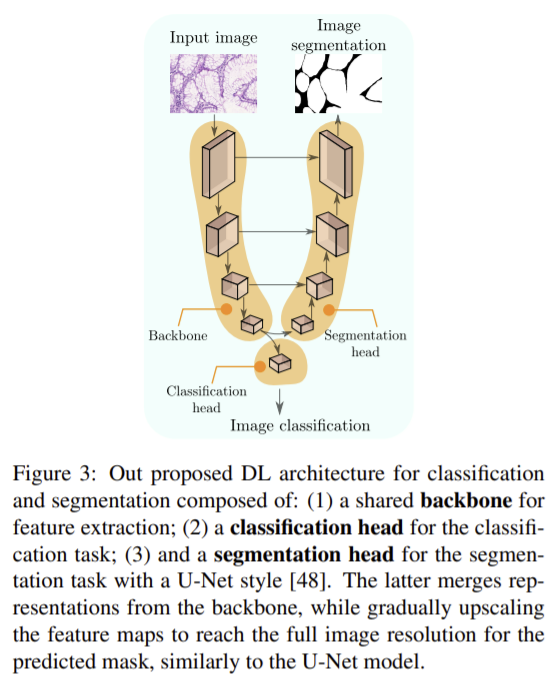 CAM과 Grad-CAM 기반의 방법론을 이용하면 상대적으로 비싸지만 정확한 RoI를 찾지만 의료 이미지인 조직 분석 데이터와 같이 상대적으로 어려운 시나리오에서는 잘 작동하지 않습니다. 또한 CAM의 경우 비지도학습 방식이므로 잘못된 경우에 대해 픽셀 단위의 지도학습을 할 수 없고, 낮은 해상도를 가지기 때문에 복원하려면 interpolation이 필요하다는 한계로 인해 False Positive가 늘어나 실용적이지 못할 수 있다는 것에 주목했습니다. 따라서 class정보가 달린 학습 데이터를 이용하여 픽셀 단위의 주석을 얻었습니다.
