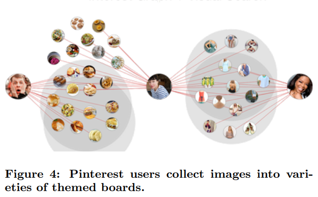시작하기전에 당연히 입력되는 값들이 어떤 값이 있는지 알아야 하겠죠? 위 이미지는 유저들이 이미지를 다루는 방법에 대한 내용입니다. Pinterest에 입력되는 이미지들은 위와 같이 특정 유저들에게 게시판 형태로 묶이게 됩니다. 이러한 특성 떄문에 이 이미지들은 엄청난 metadata를 보유한 hand-curated-collection으로 만들어져있습니다.
