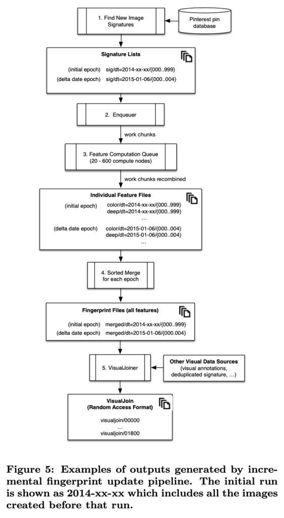 이 부분은 과연 Pinterest는 어떻게 이 대용량 시스템을 운영하는지에 대한 이야기입니다. Pinterest는 기존의 뽑아둔 feature들도 갱신될 수 있다는 점을 고려한 것 같습니다. 그래서 새로운 이미지가 들어왔거나, 아니면 내가 모델을 변경해서 feature를 새로 바꿔야할때를 위해 Incremental Fingerprinting Service를 구축했다고 합니다.