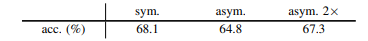 실험적인 결과, 비대칭적인 구조에서도 유의미한 실험 결과를 보여줍니다. 하지만 대칭적인 구조가 성능이 좋은 것을 보았을 때, 대칭적인 구조가 보다 밀도있는 다양한 표현을 보여줌으로써, 성능 향상에 기여했다고 볼 수 있으며, 이는 2장의 영상을 쌍으로 하여 비대칭적인 구조에 입력한 asym. 2x에서의 성능 향상이 앞선 주장을 뒷받침합니다.