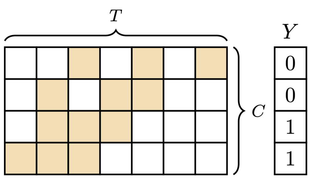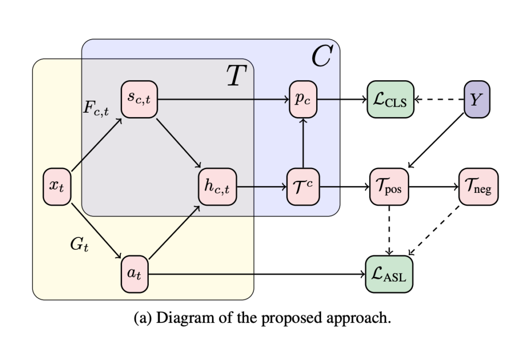 - Y\subseteq \{ 1,\ldots ,C\} , Weakly Supervised 상황에서 라벨은 C개의 Action class 집합만 주어지게 됩니다. 즉, 각 instance가 어느 Class인지는 모르는 상황이고 비디오 내부에 존재하는 action label들의 종류만 아는 것 입니다.