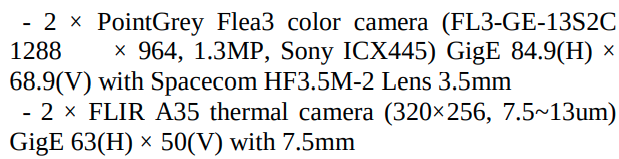 *각 카메라에 관한 설명은 “R2T2: RGB-Thermal-Depth Dataset for Pedestrian Detection”를 참고했습니다.