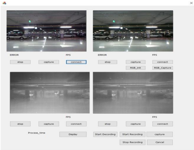 카메라의 정상 동작을 확인하는 척도인 consistency error 의 영상 수와 카메라 별 영상획득 주기 (frame per second)를 그림 4와 같이 시각화 하여 사용자로 하여금 센서 시스템의 상태를 모니터링 하도록돕는 역할을 합니다.