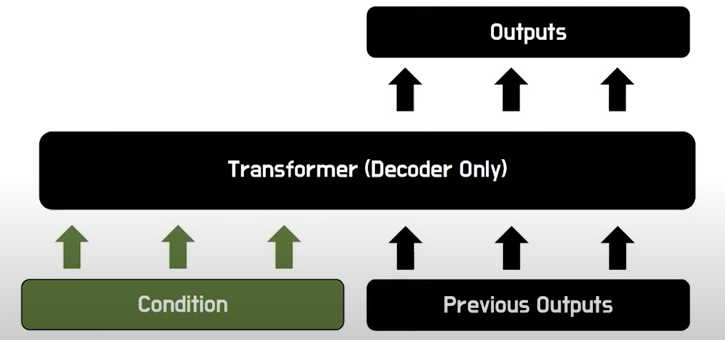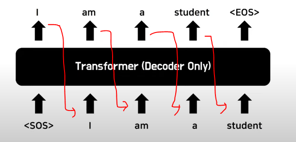 여기서 1차적으로 중간정리하자면 현재 앞선 방법은 결과적으로 ‘Codebook of Image Consituents’ 을 잘 만들기 위한 과정입니다. 그리고 이러한 Codebook이 있으면 이를 Transfomer에 기존 NLP처럼 적용할 수 있습니다. 아래 예시는 모델이 ‘I am a student’라는 문장을 만든다고 생각하면 ‘I’ 라는 첫번째 입력이 주어지면 연속적으로 뒤에 단어들을 생성하게 됩니다.
