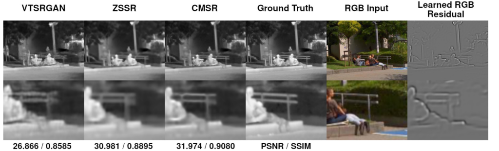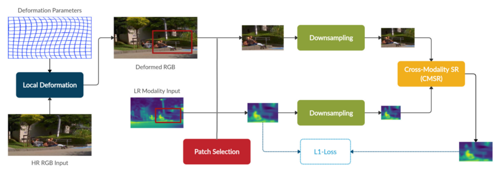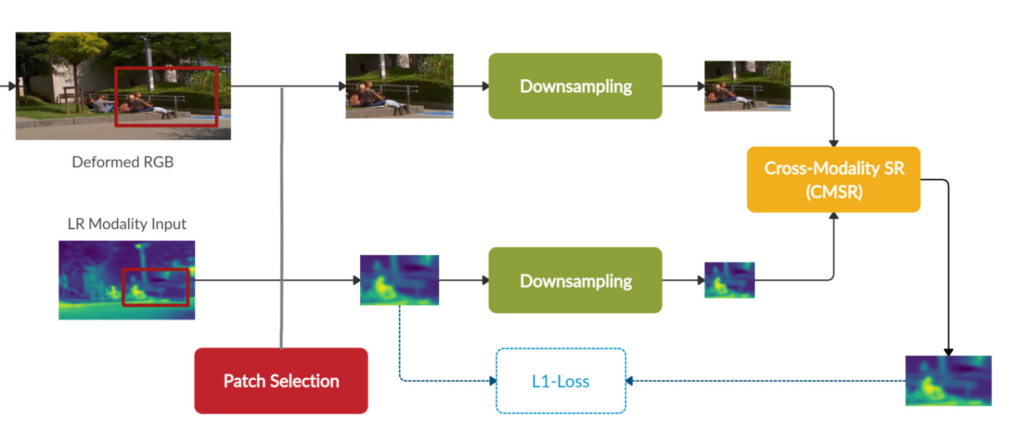 앞서 방법으로 RGB 영상을 Thermal에 맞게 Deformed 하였다면, Patch Selection이라는 방법을 통하여 랜덤의 영역을 RGB ,Thermal 모두 동일한 영영역의 패치를 crop하고 해당 패치에 대해서 Super Resolution을 수행합니다. 여기서 다운샘플링을 수행하는 이유는 실제 고화질의 Ground Truth가 없기 때문에 현재 영상을 다운샘플링하고, 이를 Super Resolution으로 키워서 현 Resolution의 영상과 비교하는 방식으로 모델을 학습한다고 합니다. 저는 여기서 ‘그럼 resoltuion이 큰 고화질의 영상은 못만드는게 아닌가?”라고 생각했는데, 저자는 아래와같이 논문에 나타내고 있습니다.