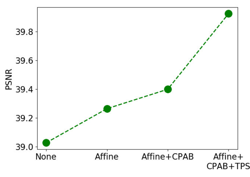 다음으로는 ‘DDTN transformation layer’ 입니다. 해당 논문은 ‘Deep Diffeomorphic Transformer Network‘에서 제안된 방법으로 기존 Affine STN layer를 변형한 모델인데, Affine STN Layer 보다 더 유연하고 expressive 한 변형이 가능하다고 합니다. 이때 DDTN layer 에서 변형 모델로는 CPAB(Continuous Piecewise-Affine Based) 를 선택하였다고 저자는 이야기하며, 해당 방법론에 대해서는 추가적으로 DDTN 논문을 읽고 리뷰할 예정입니다.