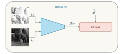 해당 방법은 모델을 이용하여 H matrix를 계산하고, 이를 토대로 이미지를 변환하게 됩니다. 다시 설명하면 실제 H 관계를 가지고 있는 source 이미지와 target 이미지 사이에서 source 이미지에 모델을 통해서 예측한 H matrix를 이용하여 warping하고 이를 기존 target 이미지와 비교하여 H matrix를 학습하는 방법입니다. 해당 방법에서 per-pixel intensity를 Loss로 사용한다고 합니다. 근데 문제는 이러한 방법은 어느정도 뷰포인트에 강인하게 작동하지만 Illumination의 변화가 크다면 전혀 작동하지 못하는 한계를 가지고 있습니다.
