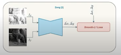 이후 Zeng이라는 사람은 좀 더 효과적인(?) Homography를 구하기 위해서 per-pixel offset regression을 제안했다고 합니다. 즉 그냥 픽셀별 오프셋을 계산하여 실제 H matrix를 계산하지 않아도 동일하게 이동시키는 방법을 제안하였다고 합니다. 이러한 방법은 제가 일전에 리뷰했던 방법과 유사합니다. (식물의 얼라인을 맞추기 위해서 사용했던 방법)