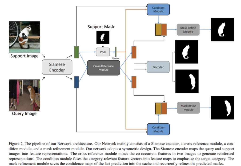 few-shot segmentation을 위해 제안된 cross-reference 네트워크로 전체적인 구조는 그림2를 통해 확인할 수 있다.
