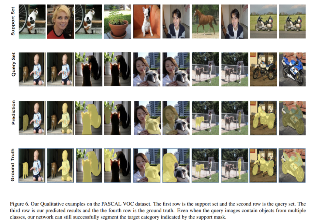 few-shot segmentation은 겹치는 카테고리가 없는 두 소량의 데이터셋으로 각각 학습과 테스트를 진행하여 테스트 이미지의 전경을 예측하는 것을 목표로 한다. 이때 라벨이 있는 이미지는 support 셋, 라벨이 없는 이미지는 query 셋이라 한다.