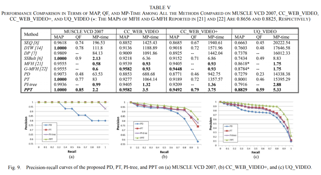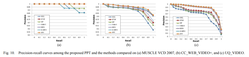 - five datasets : MUSCLE VCD, CC_WEB_VIDEO, CC_WEB_VIDEO+, UQ_VIDEO, TRECVID-CVCD