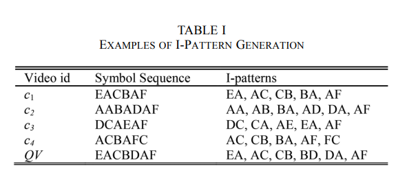 - 단순 symbol sequence 에는 길이 2 짜리 window 를 sliding over 해서 I-pattern 을 만든다.