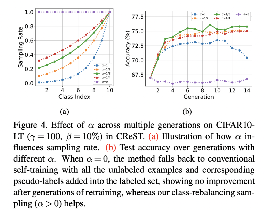 둘째로, 불균형 문제를 해결하기 위한 소수 클래스 데이터를 추가해야하며, 그래야 수도 레이블링에 대한 편향이 줄어든다. 따라서 클래스 밸런싱 방식으로 수도 레이블을 샘플링하는 간단한 방법을 제안하였다.
