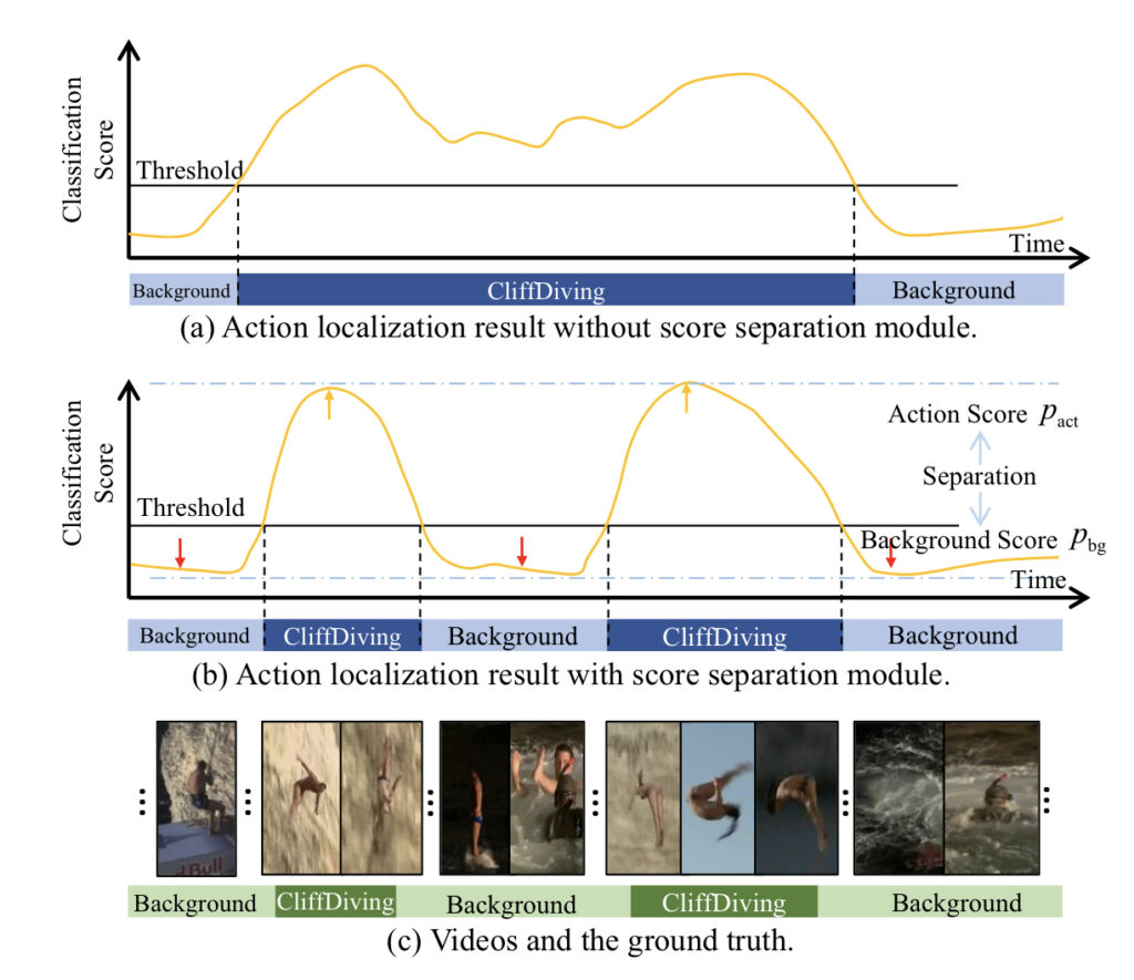 어떻게 할 수 있을까요? 예를 들어 Background class에 해당하는 frame일 때는 Background score가 높게 나오는 것이 좋을 것 같습니다. 하지만 Action class에 해당하는 프레임일 때는 Background score가 낮고 나오고, Action score가 높게 나오는 상황이 바람직 하겠네요.