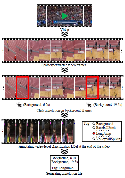 위의 사진 처럼 Background 순간에 대해서 마우스로 딸깍 클릭하듯 annotation을 할 수 있겠네요. 이따 더 자세히 보겠지만 이런식으로 하면 Video-level label만 제공했던 Weakly supervised 방식과도 annotation cost가 비슷하다고 합니다.