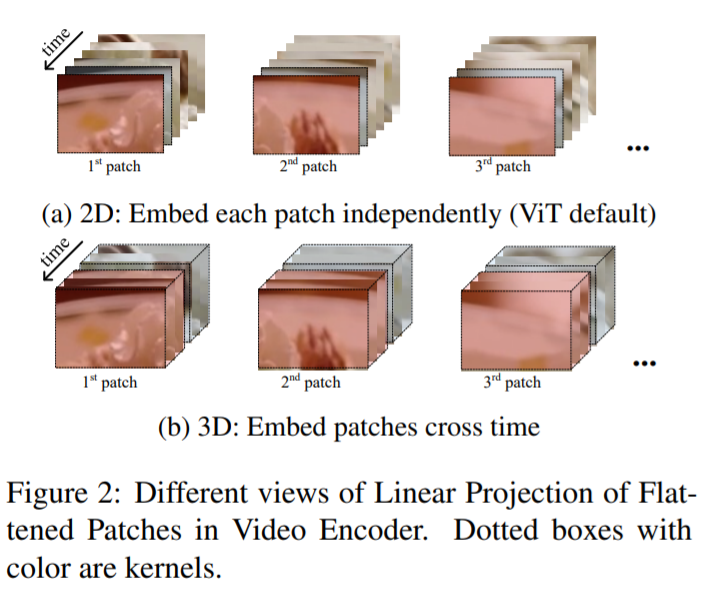 - ViT 는 frames 에서 9개의 non-overlapping image patches 를 extract 한 후, a linear projection 을 통해 1D tokens 로 만든다.